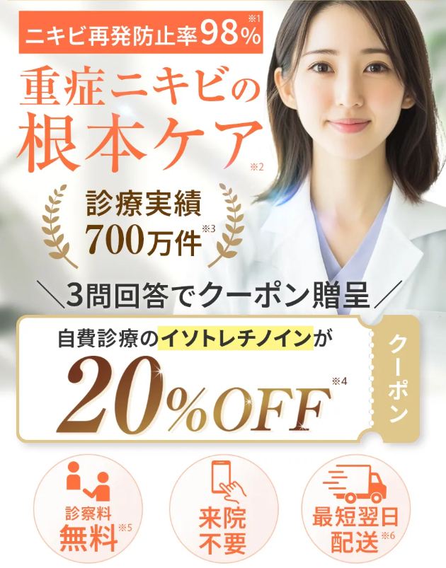 - 医師の診察を受けたうえでイソトレチノインの処方を受けられる
